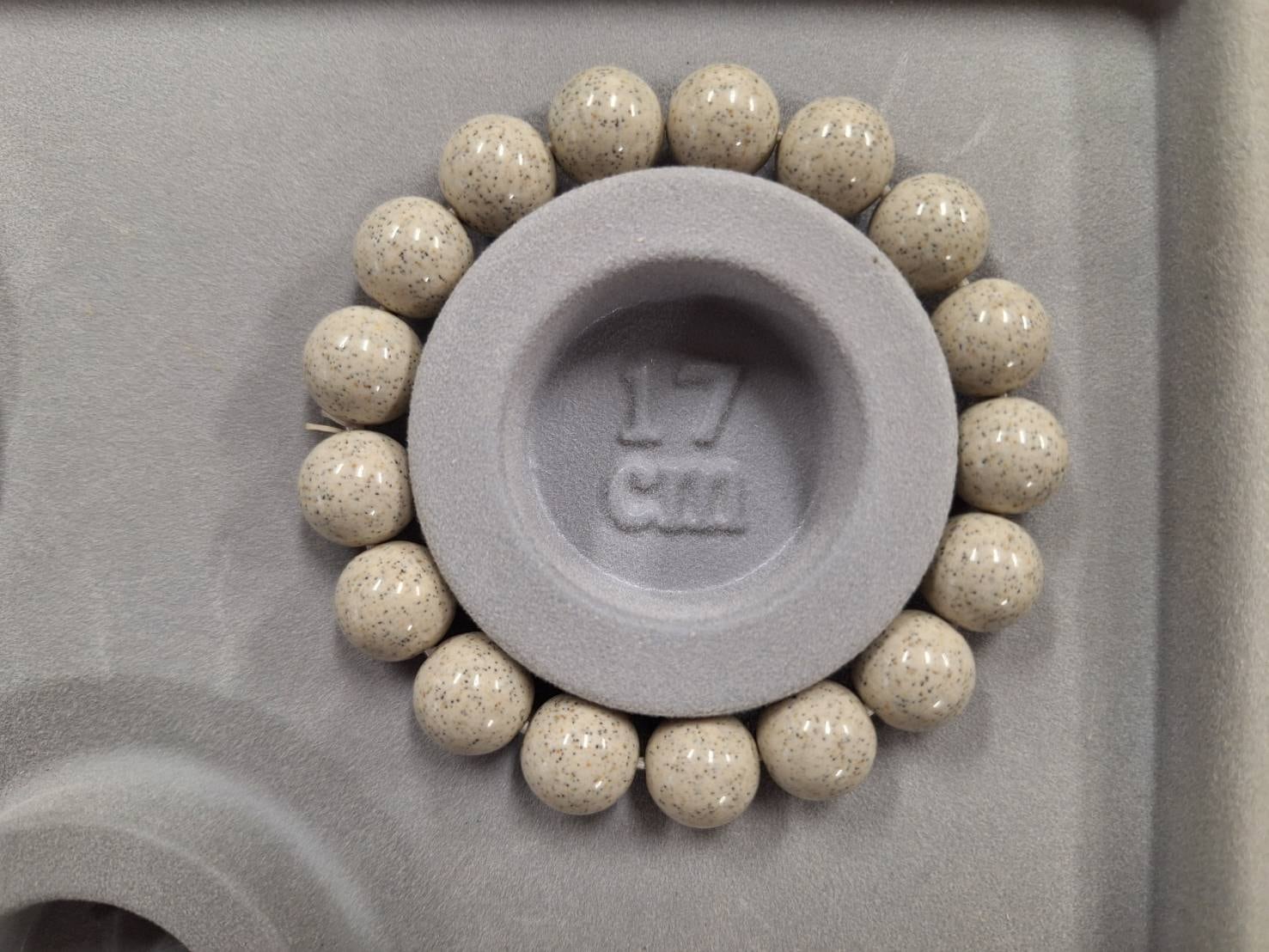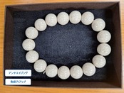 健康サロンNEOのオリジナル北投石ブレスレット、17㎝の白玉をご紹介します!白玉12㎜と黒玉12㎜の組み合わせで、シンプルながらも存在感のあるデザインです。