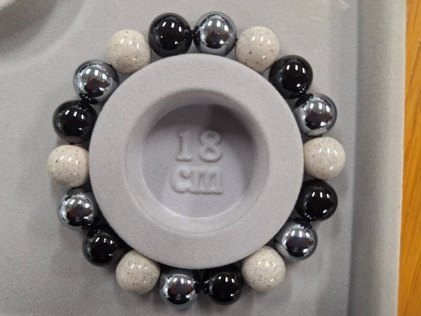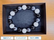 健康サロンNEO オリジナル北投石ブレスレット 18㎝白玉黒玉銀玉